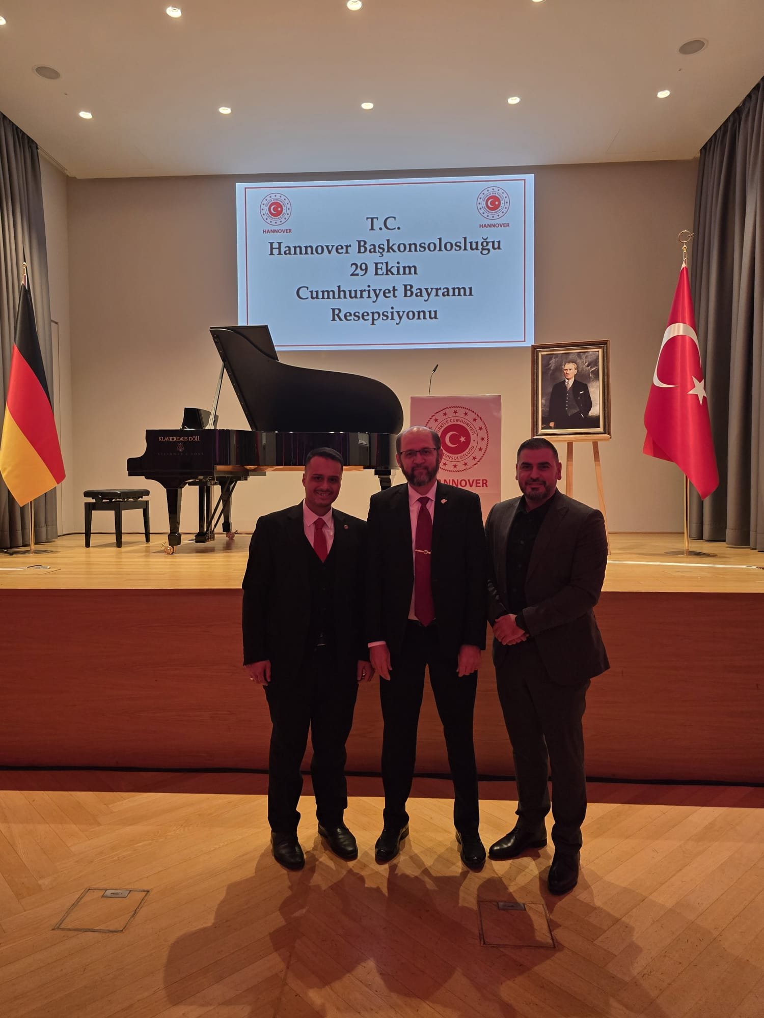 29 Ekim Cumhuriyet Bayramı dolayısıyla Hannover Başkonsolosluğu himayelerinde düzenlenen resepsiyona, dernek başkanımız Zafer Yıldız ve din görevlimiz Mehmet Karaaslan katıldı.